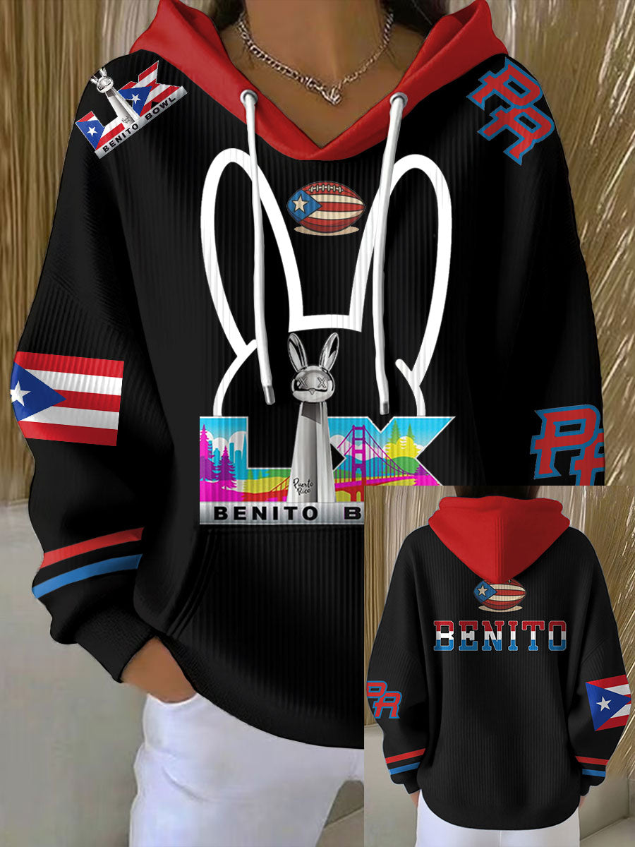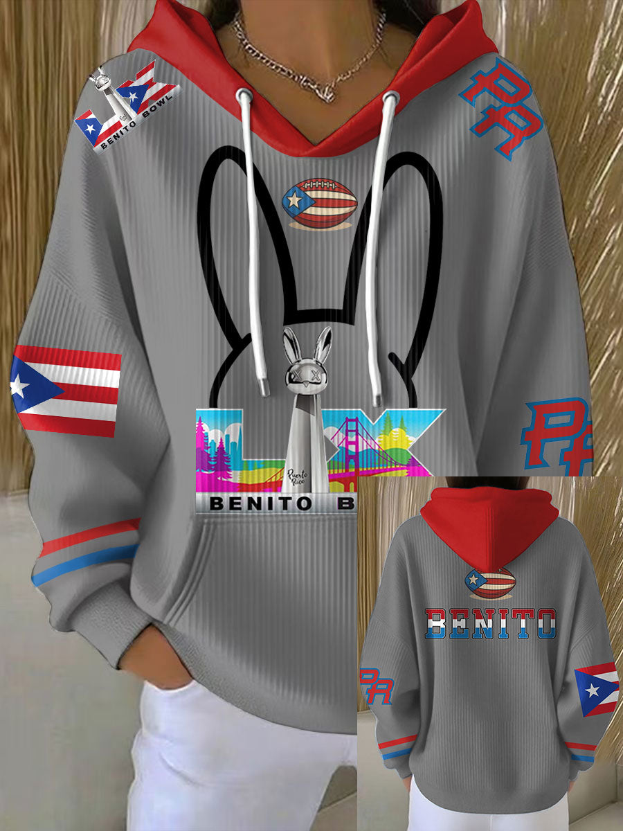 Women's Bunny Football Music Lover Printed Hoodie